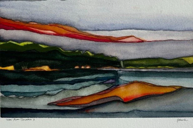 View from Paradise 3; watercolor on paper; 10 ¼”H x 14 1/4"W Framed