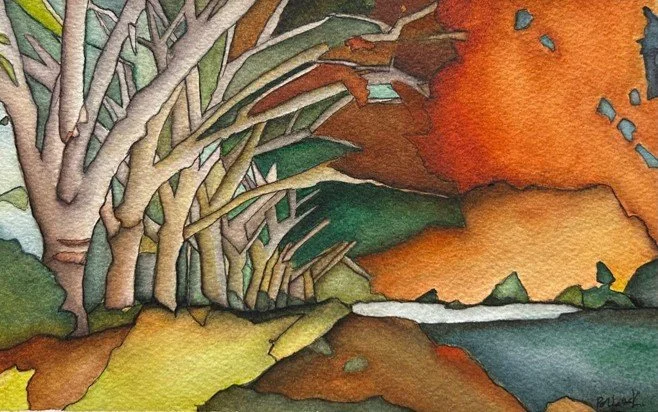 Beyond Watermill; watercolor on paper; 81/2” W x 51/4”H