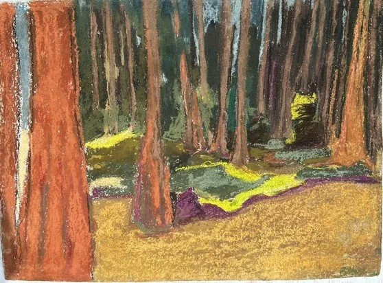 Into The Trees; pastel on paper; 22”H x 30”W unframed